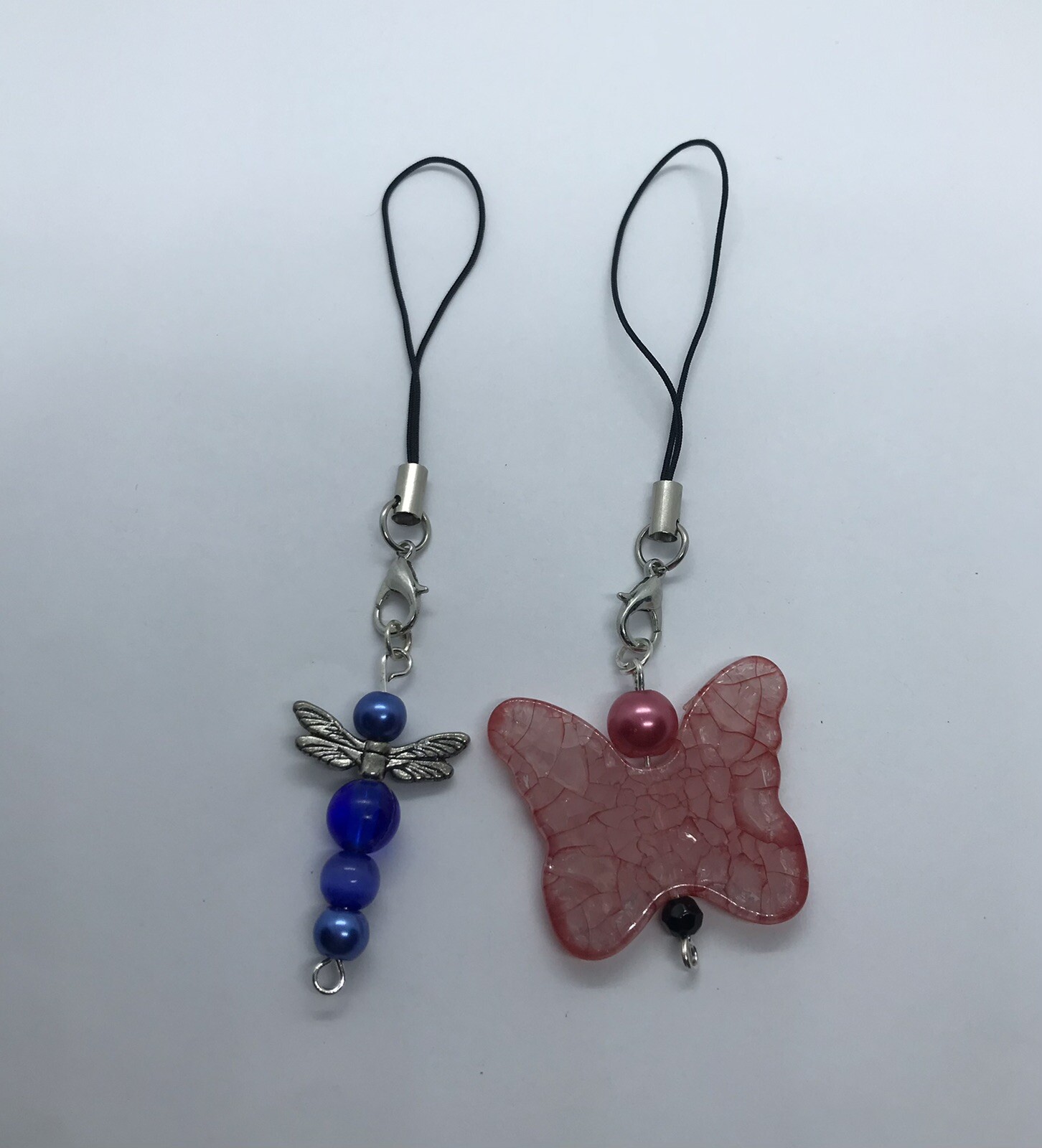 2 Blue And Red Mobile Cell Phone Charm Dangle Plastic Bead Butterfly Dragonfly Ebay